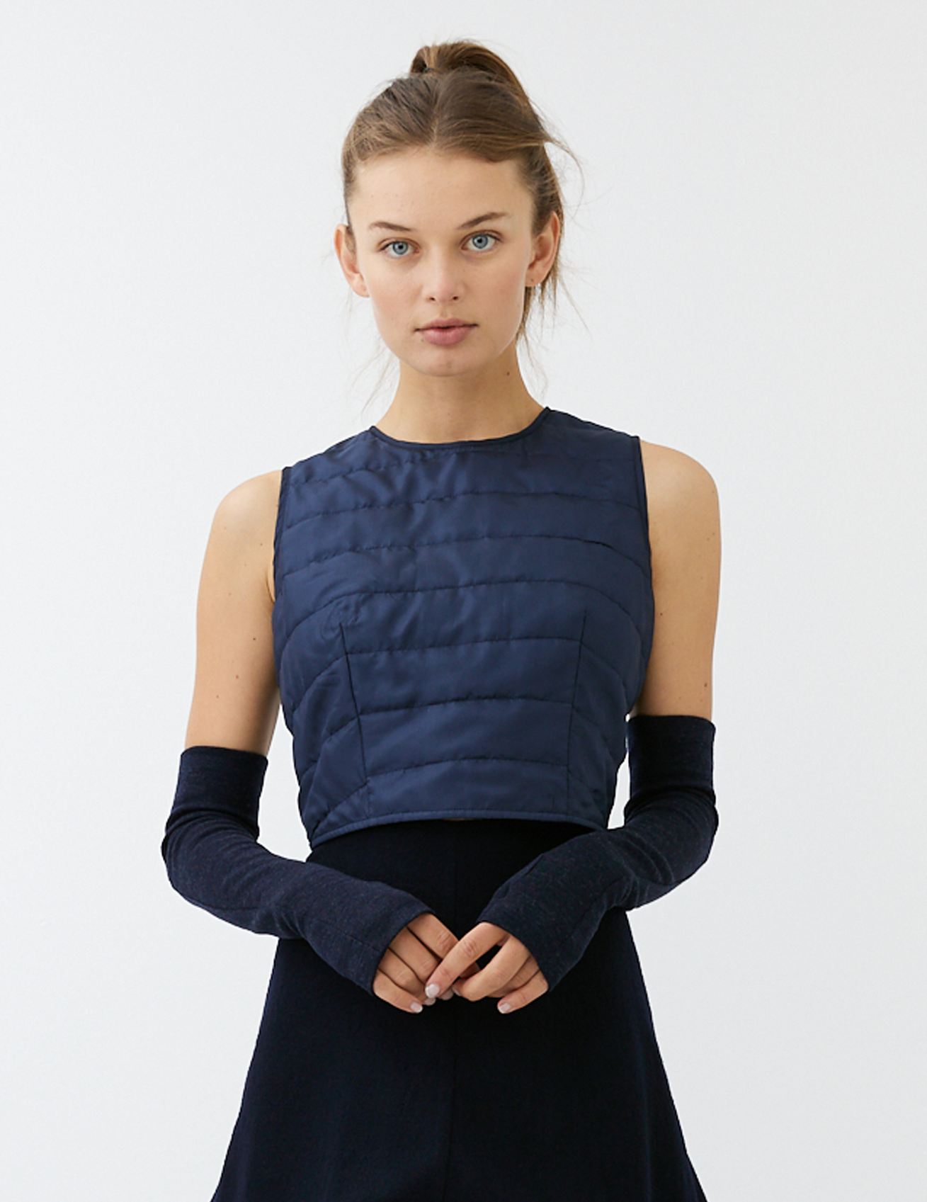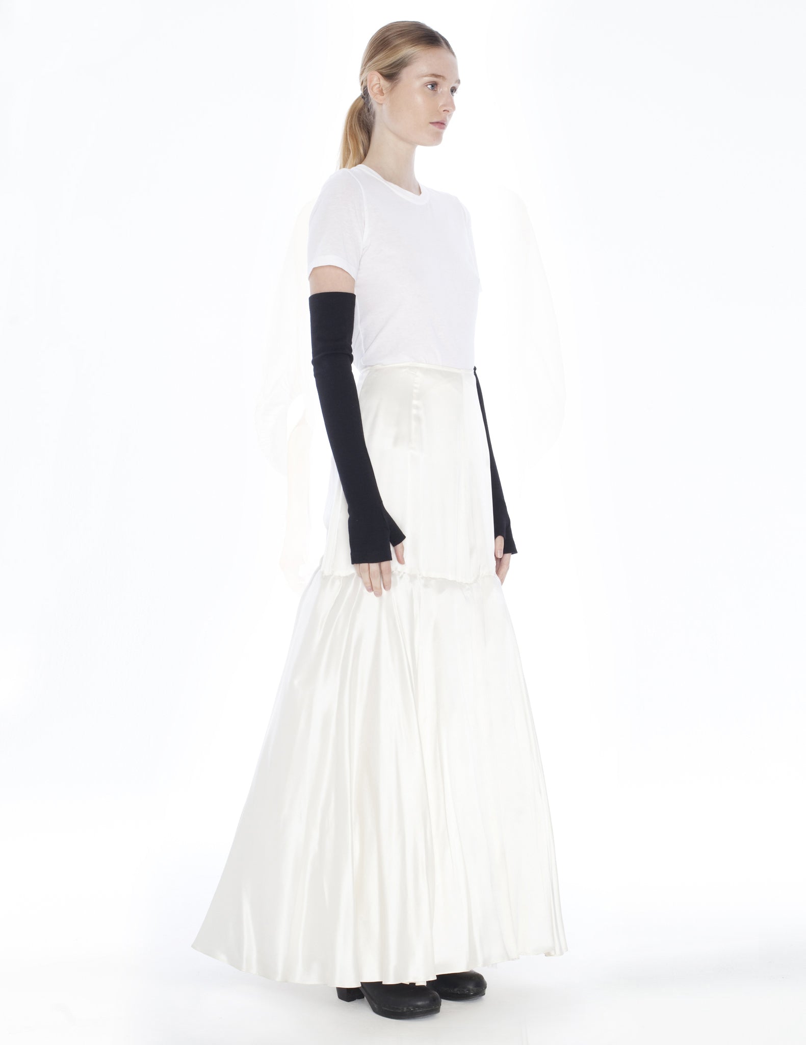 a morgane le fay signature, the albatros gloves are hand crafted from heavy wool jersey in our classic long fingerless glove.