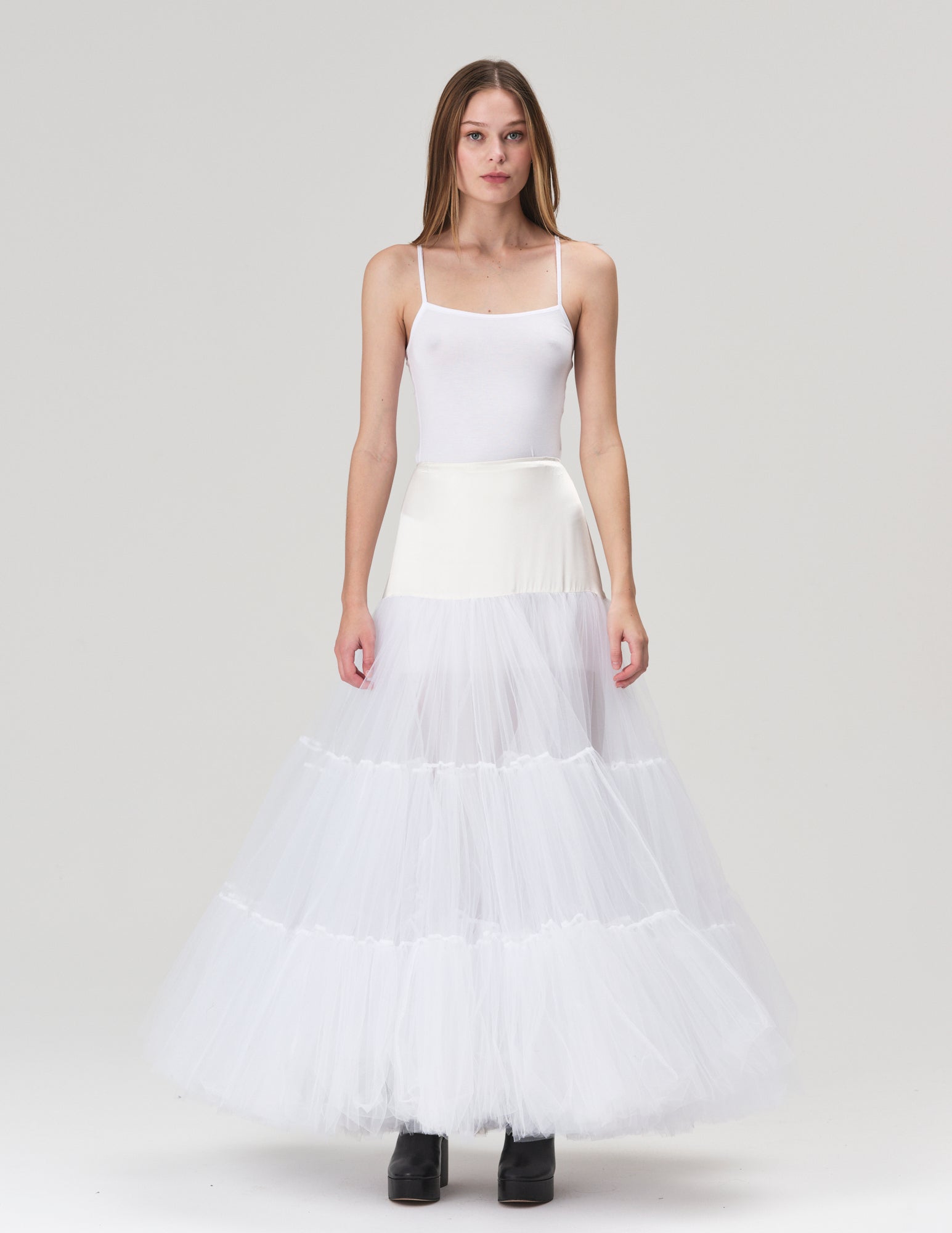 long, layered tulle crinoline skirt. styled with the primrose slip dress.