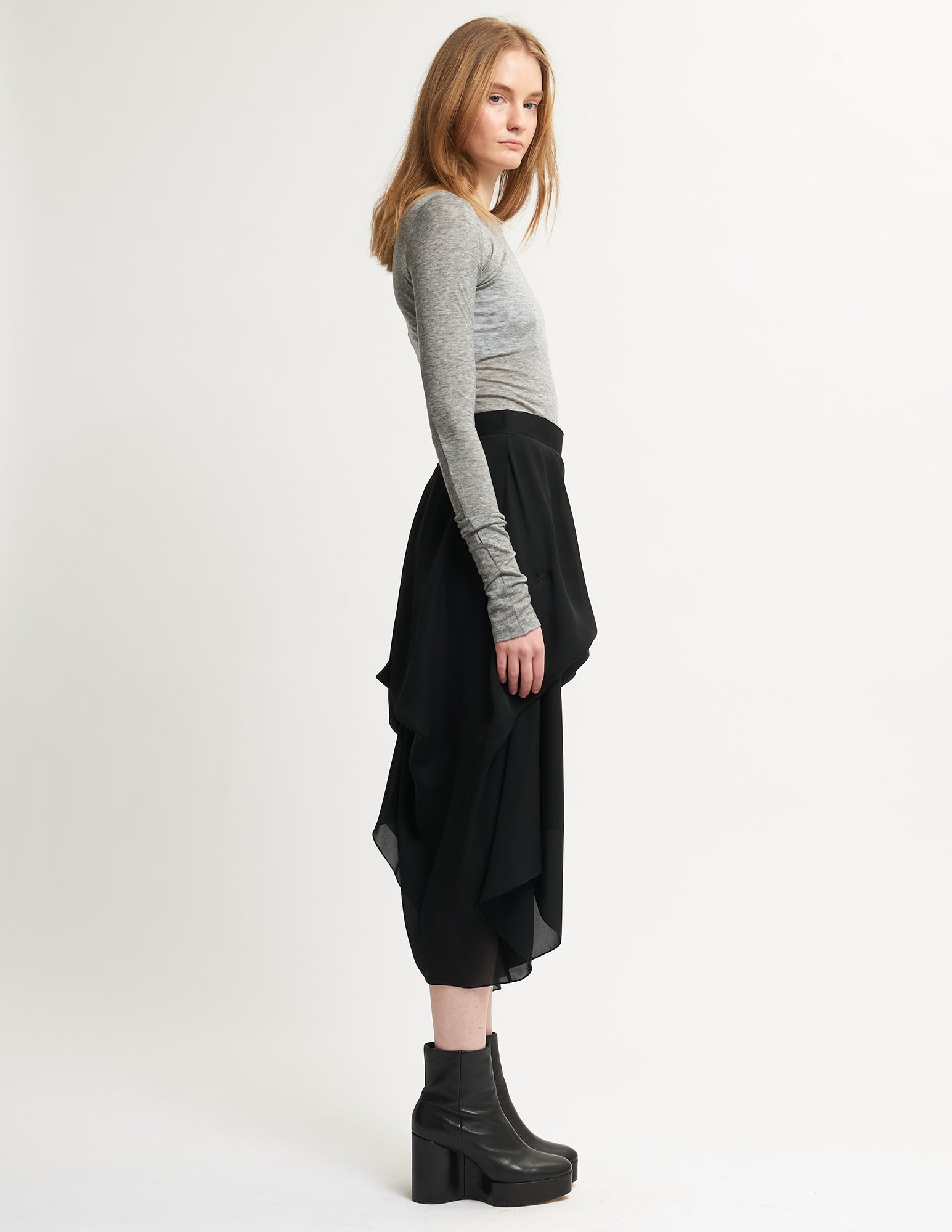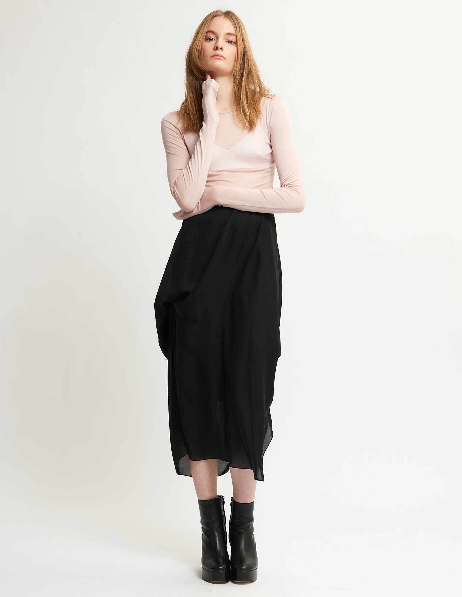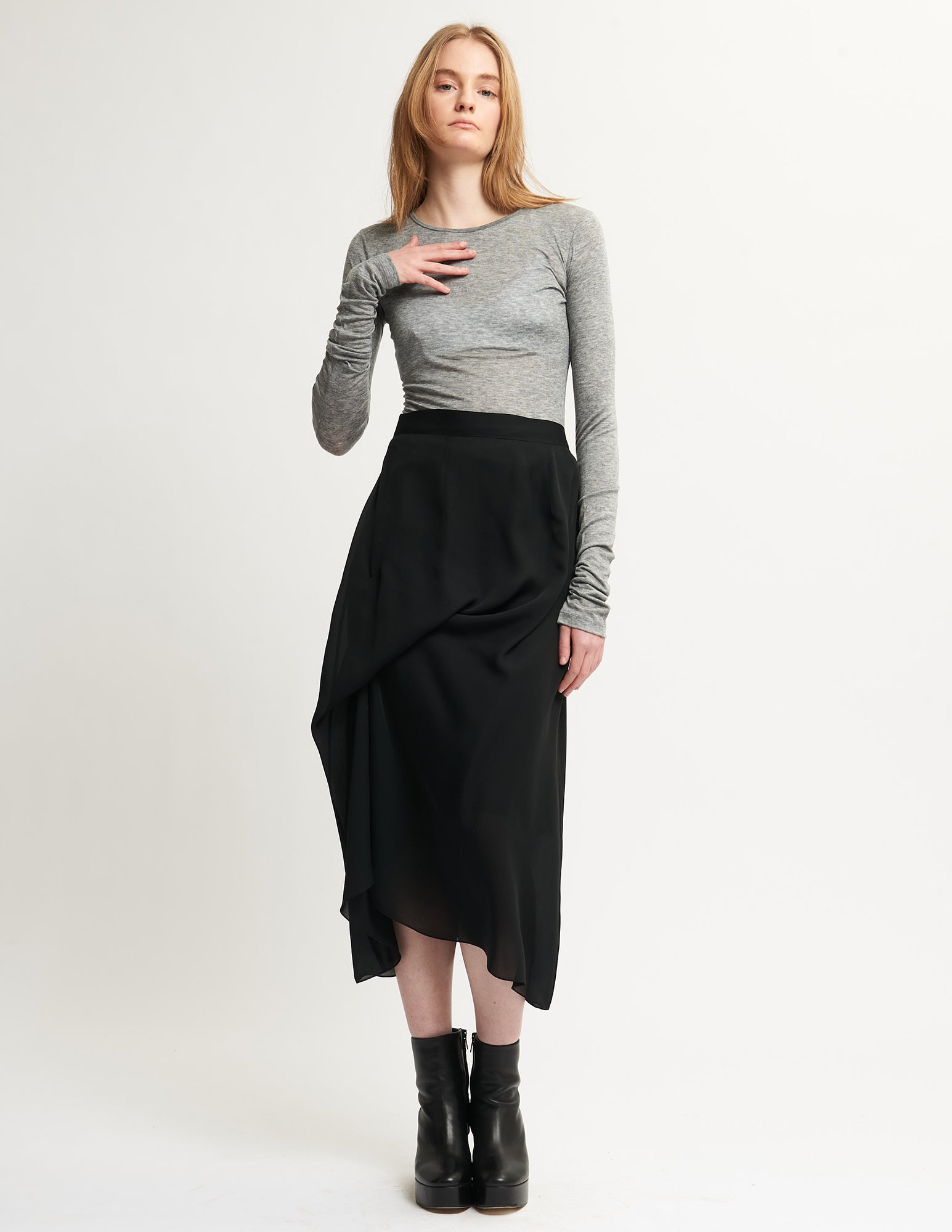 long sleeve, ultra-thin wool jersey top with a center back seam.